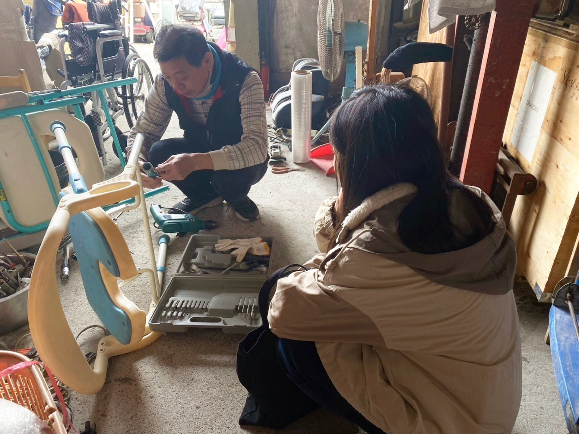 善緣坊已經營長達30年的時間,期間造福了無數有需要的朋友們,李大哥與老五老的緣分,是從10年前開始,當我們服務的對象有需要輔具或是家具時,會立即聯繫李大哥協助尋找個案需要的東西。不久前,我們又再次前往李大哥的寶藏倉庫,為服務的個案尋求可以摺疊的洗澡椅。