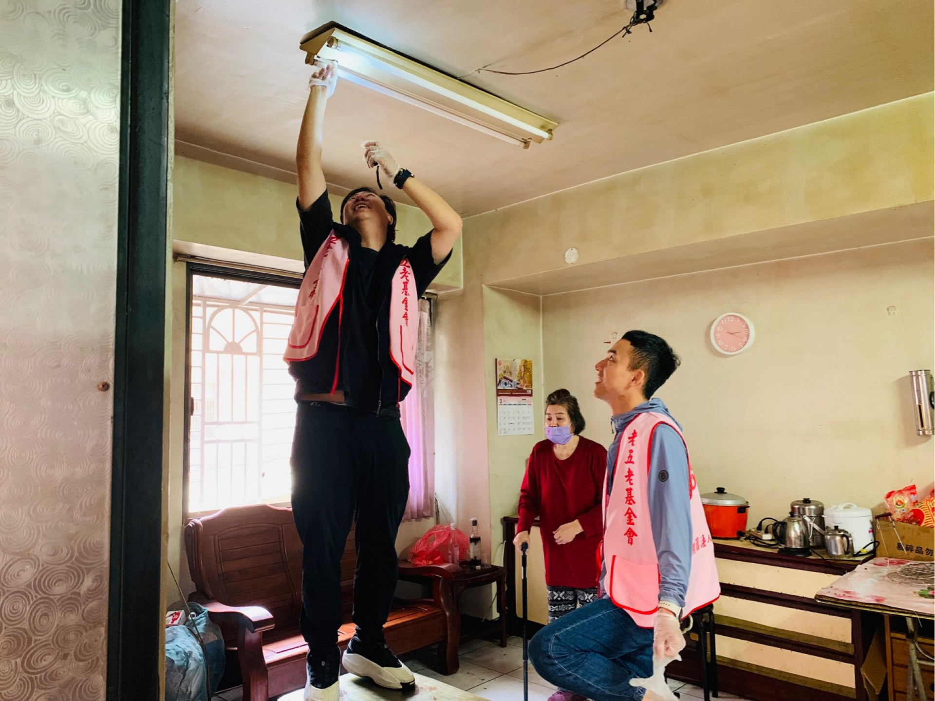志工二話不說,現場協助接上電源。電燈亮起的那一刻,阿嬤的笑容也跟著亮了起來💓