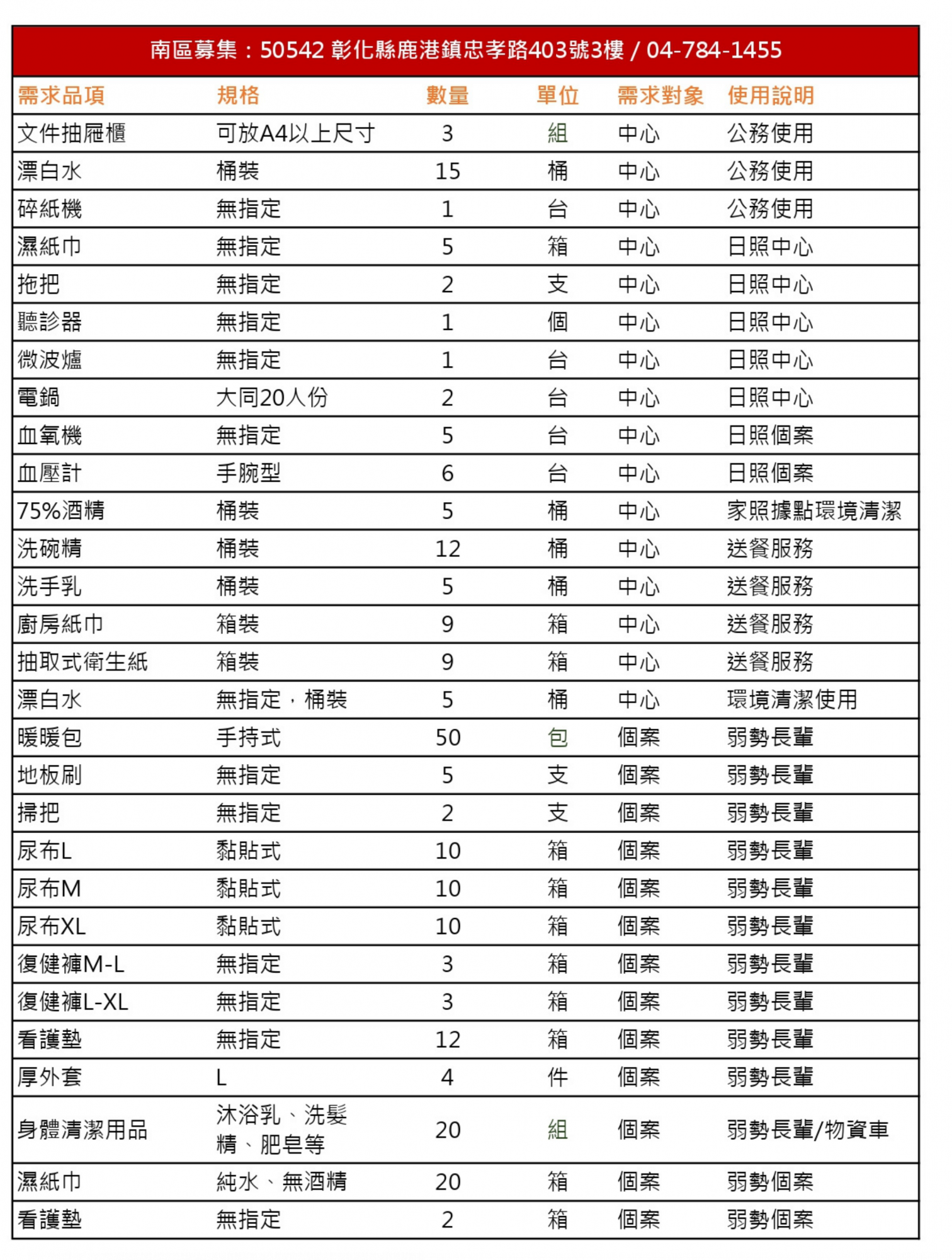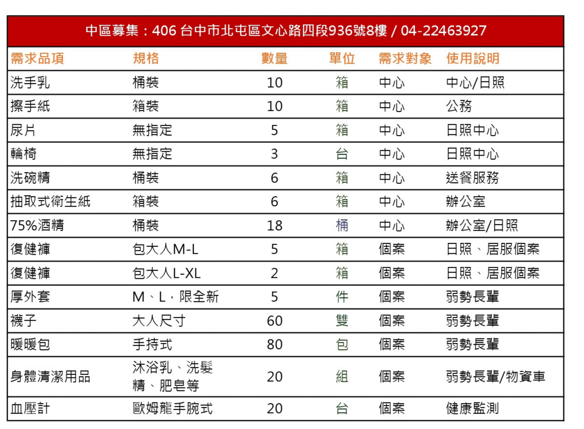 - 關於物資配送:避免造成物資浪費或過度囤放,敬請寄送前事先連絡後,再可選擇您方便的方式進行配送。