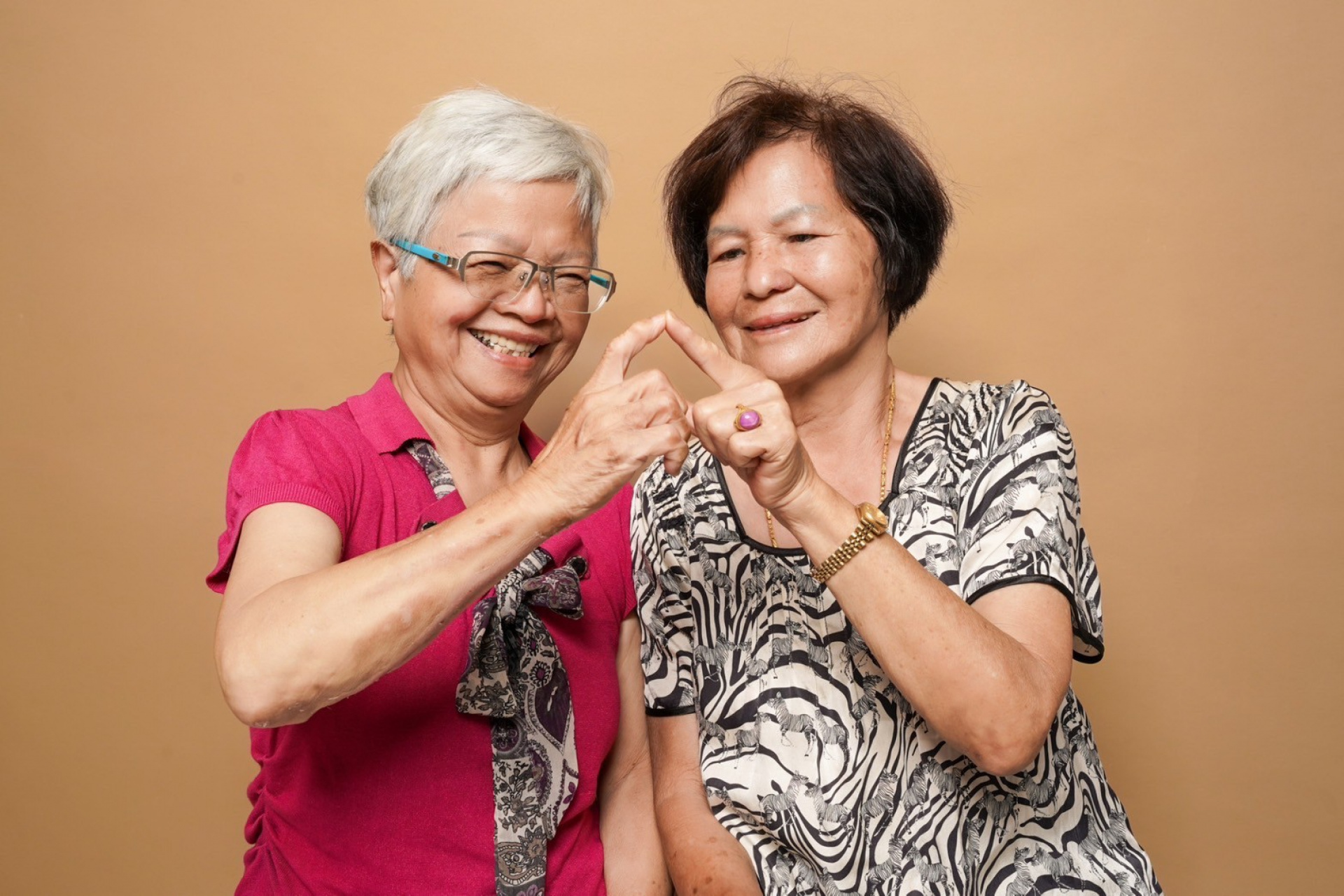 隔天拍攝時,兩位奶奶原本害羞,後來笑得自然又燦爛。道別時,她們說:「要互相保重,下次還要再見面。」